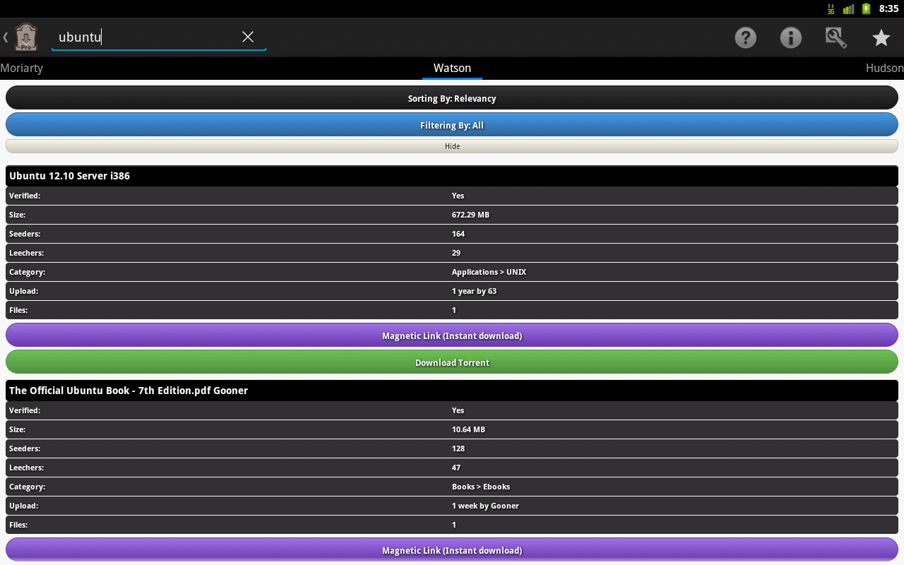 Nota: Esta aplicación obtiene la información a partir de un número de bases de datos de los torrents alojados de forma remota. Por lo tanto, la naturaleza del contenido es la responsabilidad de los respectivos propietarios de bases de datos de torrent.